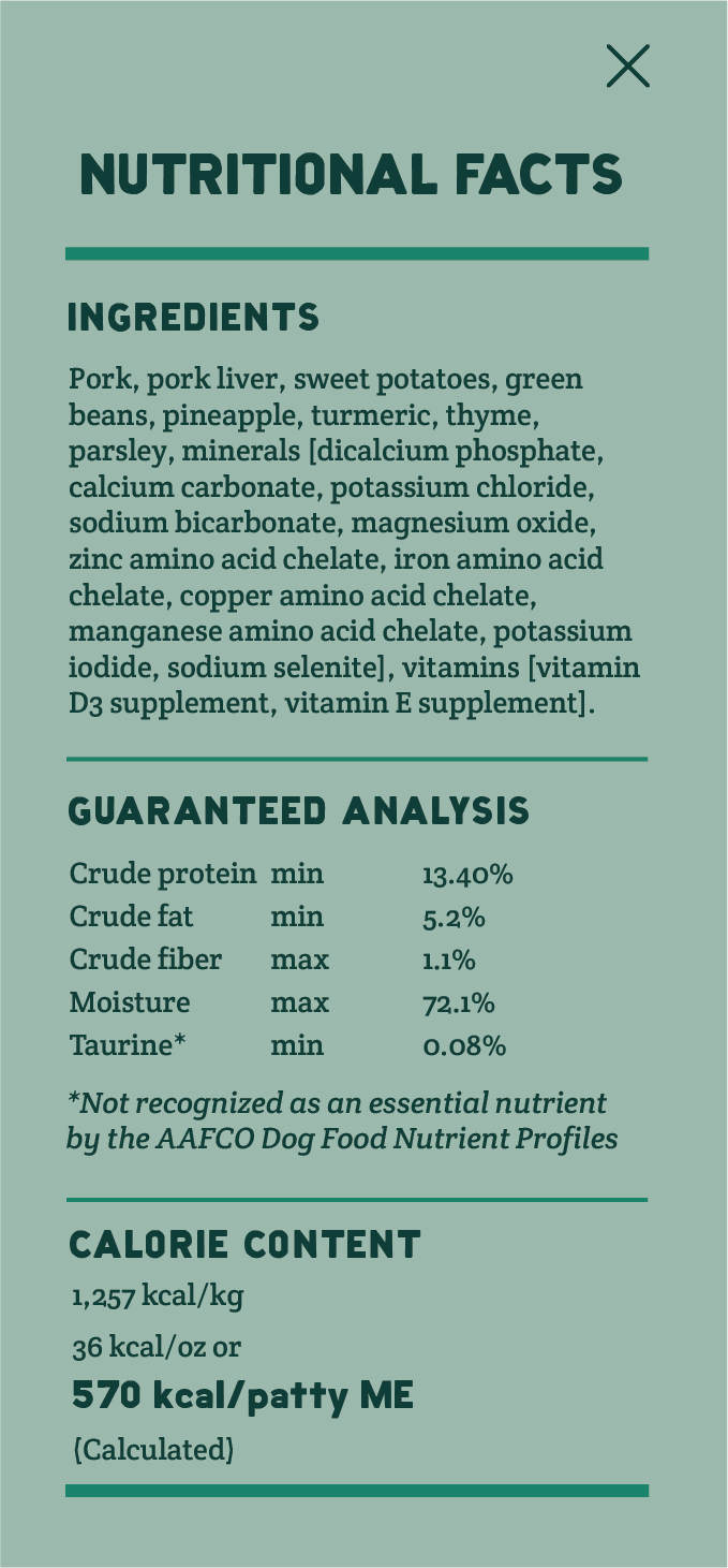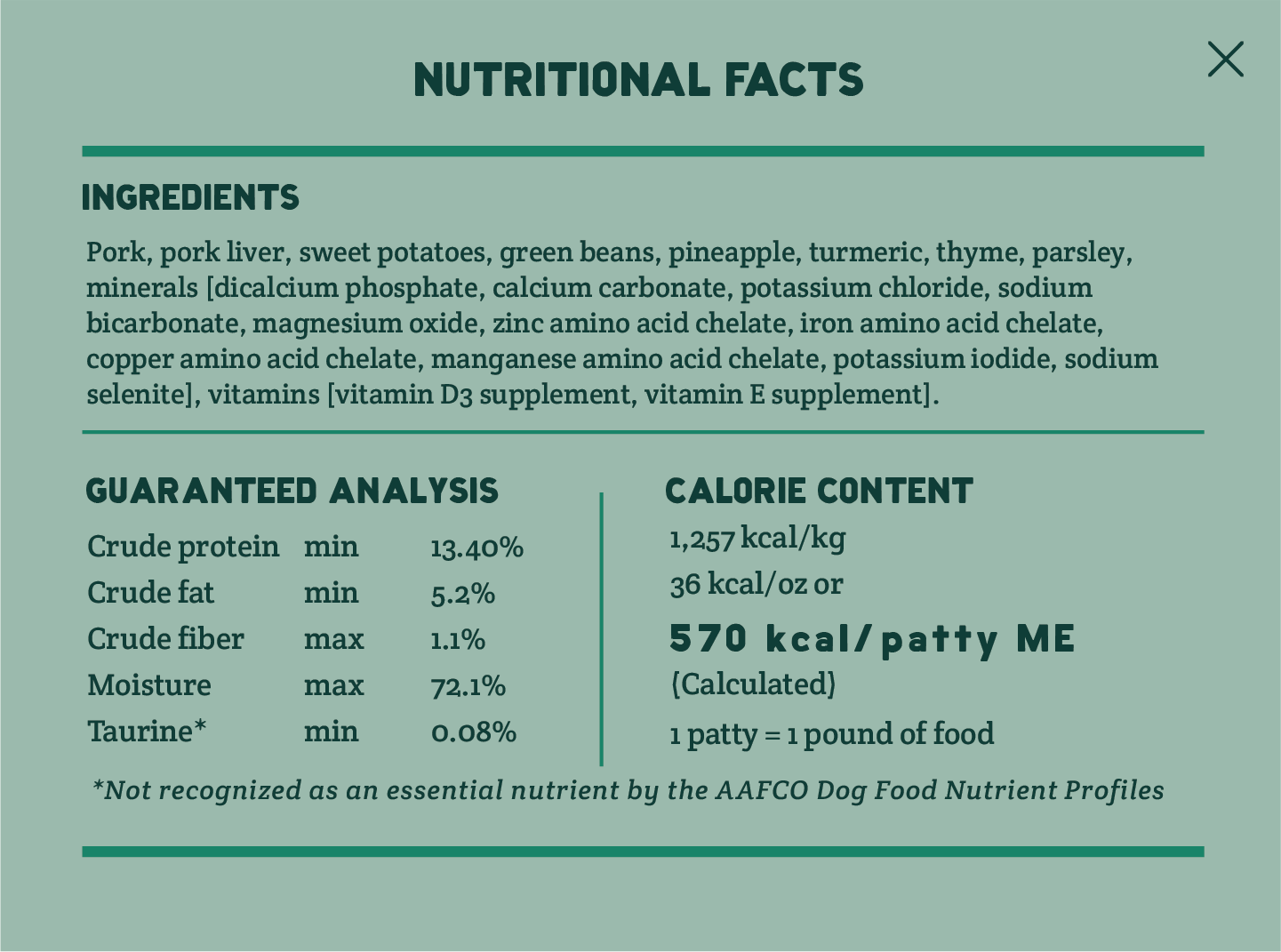 All the flavor of a luau without the limbo stick, Porky’s Luau blends savory, lean pork with superfoods like sweet potatoes, pineapple, and turmeric for your pup’s new favorite meal.