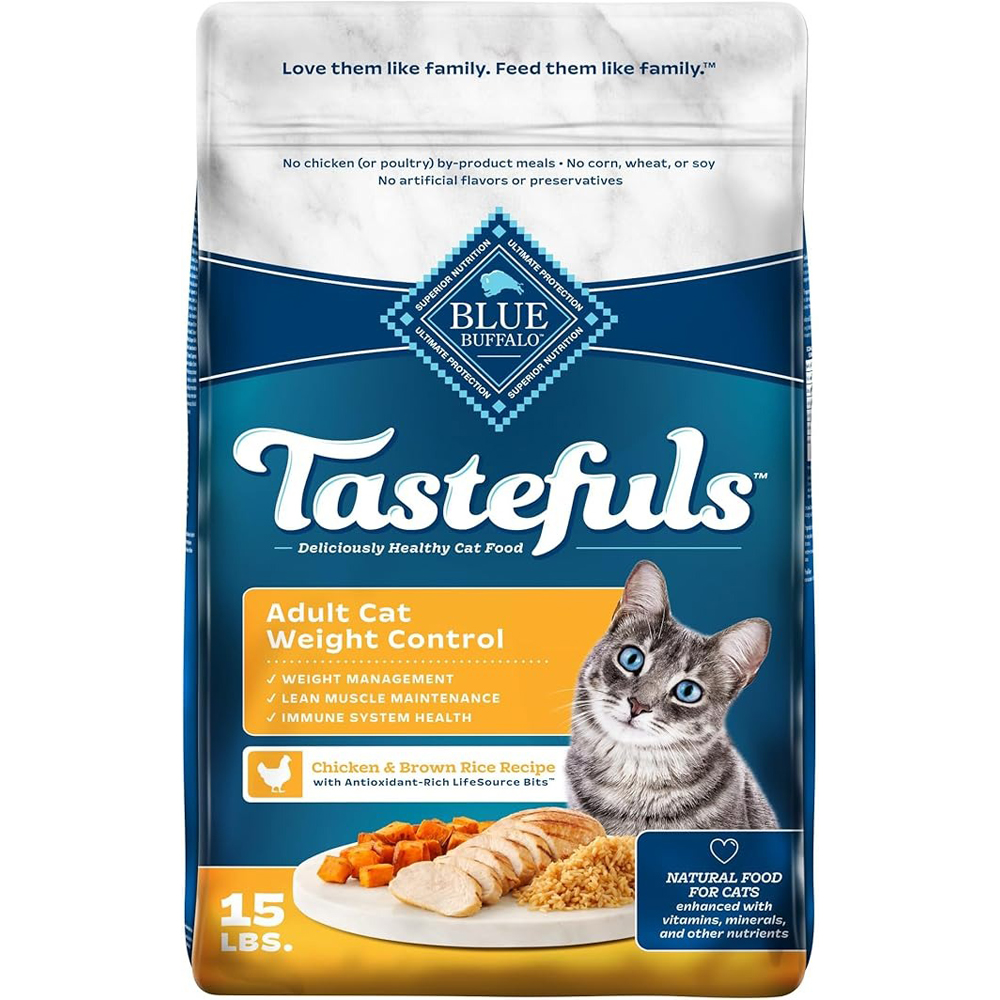 Does your cat need help maintaining a healthy weight? Try deliciously healthy BLUE Tastefuls made specifically for weight control. This dry cat food contains the real chicken that cats crave, plus healthy whole grains and vegetables for a complete, balanced, and satisfying meal.