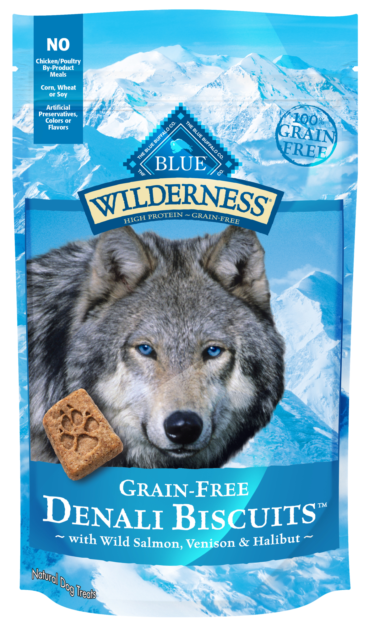 Imagine discovering wild salmon venison and halibut all in one crunchy delicious baked biscuit inspired by the unique taste of the Alaskan frontier!BLUE Wilderness Denali Biscuits are mouthwatering protein-rich treats made from the finest natural ingredients. So treat your dogâs wild side and make his inner wolf howl with a taste of the Alaskan frontier as if he were roaming the Alaskan wilderness.