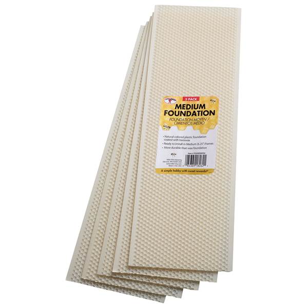 Little Giant Bee Plastic Foundation with Medium Wax, 5count; Give your bees a strong foundation with the Little Giant Bee Plastic Foundation w/ Medium Wax. These beeswax-coated plastic foundations come ready to install into medium 6.25-inch frames.