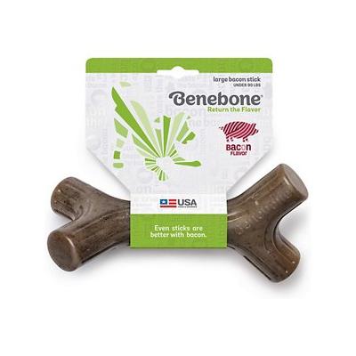 Tougher than real sticks and flavored with real bacon the Bacon Stick is sure to upgrade your pup s chew and fetch game. At Benebone we started with the premise that dogs experience scent and flavor in a way we can t even grasp. So we ditched the neon colors and loud squeaks. Inspired by a dog s powerful sense of smell we developed long-lasting durable chews that are jam-packed with real bacon. Once your tiny dog takes a bite of our dog chew toys he ll be hooked.
