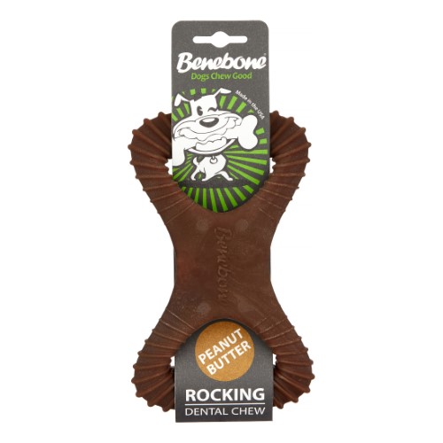 Benebone s Dental Chew is not only a durable flavor-packed chew. It makes for a great tug toy. And what could be better than a peanut-flavored toothbrush We started with the premise that dogs experience scent and flavor in a way we can t even grasp. So we ditched the neon colors and loud squeaks. Inspired by a dog s powerful sense of smell we developed a long-lasting durable chew that s jam-packed with real peanuts. Once your dog takes a bite of our dog chew toys he ll be hooked. Wonder if Benebone is right for your dog Here’s what you need to know. Since it’s hard it’s important that your pup has strong teeth. If you’re unsure check with your vet. Nobody likes an unexpected trip to the dentist. Keep an eye out for wear and tear. Within a month or so we find that most dogs chew Benebone into submission. Keep away from households with peanut or other allergies.