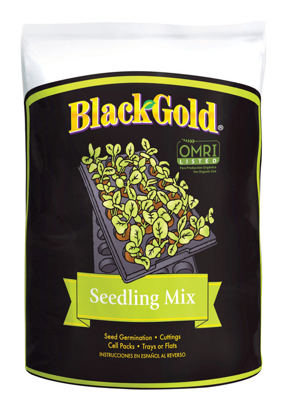 Black Gold Seedling Mix is a highly refined organic seedling mix. Ideal for root growth in newly germinated seedlings and cuttings. Contains low salt and is fine yet porous. Water retentive and features an organic wetting agent to ensure uniform water penetration. Ideal for use with cell packs trays or flats. Contains Resilience which is a beneficial plant substance that makes plants stronger promotes better root growth and may improve resistance to wilting. OMRI (Organic Materials Review Institute) listed. null -.