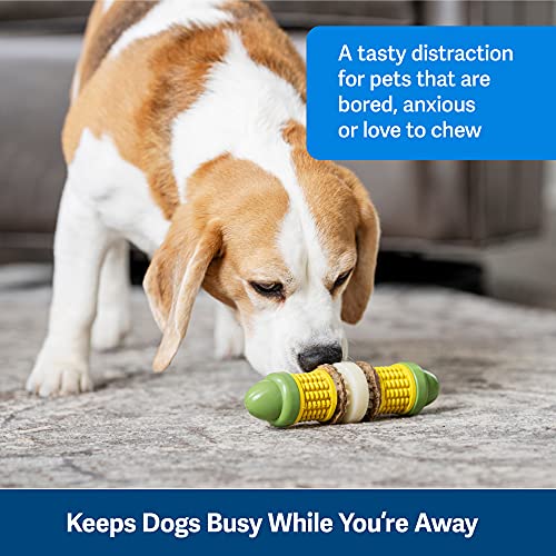 While you’re grilling in the backyard, let your pup share in the fun! From barbeques on the weekends to entertaining your dog while you cook dinner on the weeknights, this toy is the perfect treat. Add up to 2 treat rings to the Busy Buddy Cravin – Corncob by unscrewing the ends and sliding them on. For double fun, you can smear nut butter (or even doggie toothpaste!) on the corn kernels to keep your dog entertained even longer. The textured surface of this toy helps keep your dog’s teeth and gums clean by preventing and removing build up as they chew. It’s a clever toothbrush that looks and tastes like a snack genius, we know. The BPA free rubber is butter scented to keep your dog happy even after the treat rings are gone, and it’s top rack dishwasher safe to make your life easier. Your pet deserves the best. Trust PetSafe to help keep your pet healthy, safe and happy.. Specifications Size: Small & Medium.