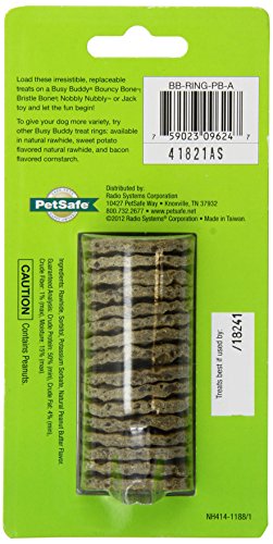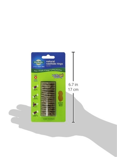 Keep your pooch stocked in treat rings with the PetSafe Busy Buddy Rawhide Treat Rings. Includes 16 refills in peanut butter flavor. Treat rings are a great way to reward your dog after training sessions. They also keep your dog playing longer. Available in small medium and large. For dogs over 6 months old. PetSafe brand is here to help you and your pet live happy together.