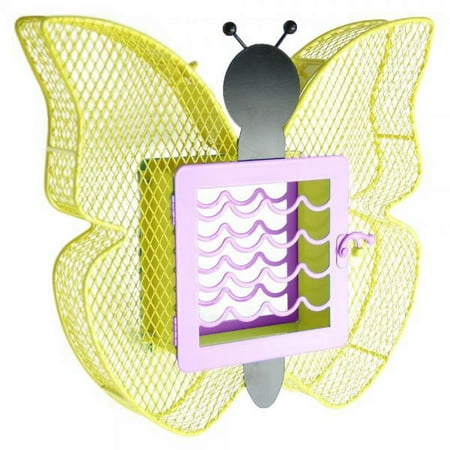 Whimsical Butterfly feeder. Very functional feeder. Holds up to 2 lbs. of seed sunflower seeds or peanut chunks. 2 metal panels at the top allow for refilling of seed. A latch on the side allows you to place 2 suet or 2 seed cakes. Powder coated steel construction. A chain and hook at the top for hanging.
