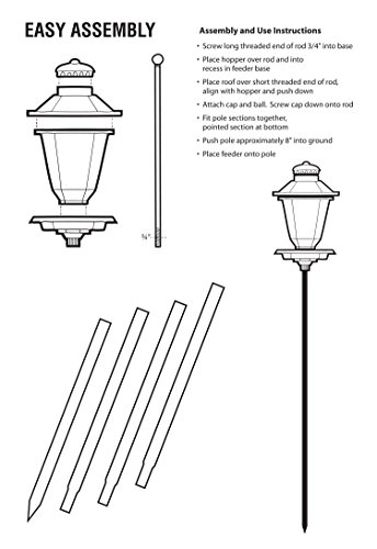 Deluxe Coach Lamp Feeder. 6 foot steel mounting pole included. Holds approximately 11 lbs. of seed. Fills via the swivel top. Comes in retail box.