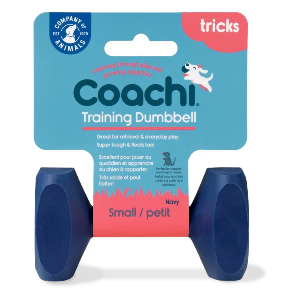 Coachi’s small dog training dumbbell is an accessory designed to enhance the physical and mental performance of dogs. It consists of a bar with weights at the ends that the dog must hold in its mouth and carry following the guide’s instructions.