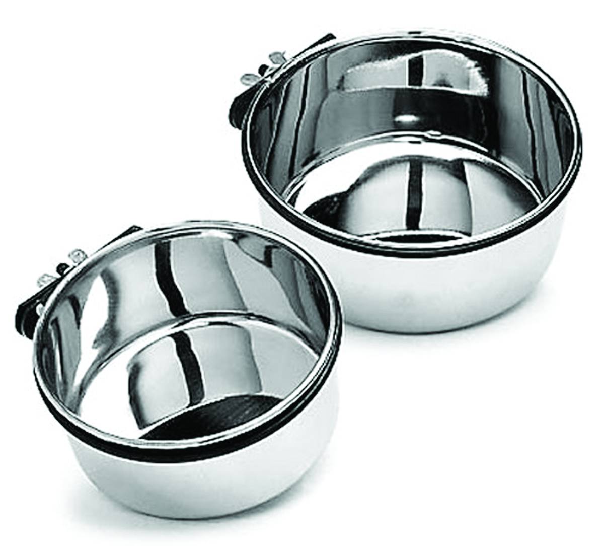 Spot Clamp-On Coop Cups are perfect feeding bowls for birds small pets and even little dogs! Made of tough hygienic stainless steel each bowl features a secure bolt clamp that easily attaches to wire cages crates chain-link fences and more.
