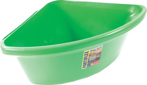 Can be used as a corner feeder for horses, wash-up on construction sites, and as a planter for flowers, vegetables and more. Easy to clean. Special offset front lip design helps keep feed inside. Fastens to corners with bolt or with double-end snaps (not included). Made with fortalloy rubber-polymer alloy to resist cold weather cracking.