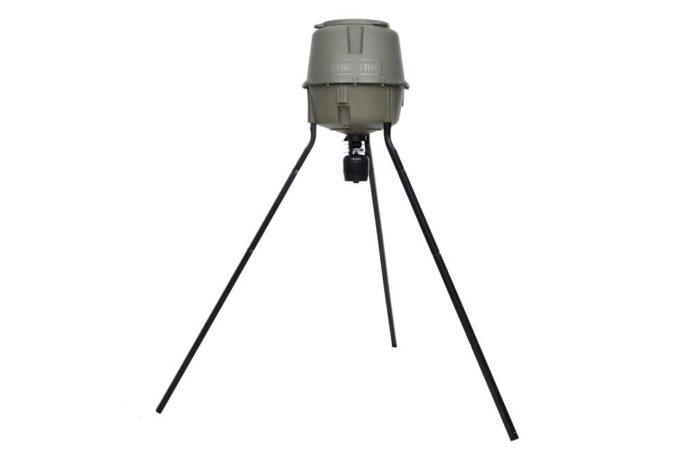 The Deer Feeder Elite II Tripod is a tough and economical options for a reliable wildlife feeder. The tough polymer hopper will hold more than 150 lb of corn and features the Pro II Hunter Feeder Kit with an adjustable funnel, metal spin plate, ABS plastic housing, feed-level estimator, battery indicator and external power port. The feeder kit will feed up to 6 different times per day from 1 to 20 seconds per feeding. The Deer Feeder Elite II offers land managers enough steel legs to set the feeder up at 5.5 ft, 7 ft or 8 ft tall.