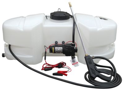 The FIMCO 25 Gal. Deluxe Spot Sprayer is the most widely used sprayer for weed and pest control. The UV resistant, molded polymer tank has a 5 in. tethered lid for easy access and is completely drainable. This model features the best in class High Flo High Performance 2.4 GPM Pump with inline fuse protection. The Deluxe Pistol Grip Handgun distributes up to 40 ft. of horizontal spray, 25 ft. of vertical spray and comes with 15 ft. of 3/8 in. hose. This sprayer sets the industry standard for small scale liquid application.