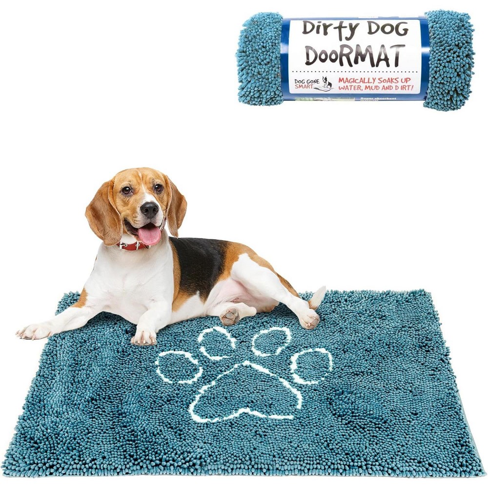 The Dirty Dog Doormat is a highly absorbent and versatile solution for keeping the floors of your home and car clean and dry. Featuring advanced microfiber technology with 50% more strands per inch, the dog floor mat measures 31 x 20 inches, soaks up to 7 times its weight in water or mud, and dries 5 times faster than ordinary mats. Its plush, velvety texture is gentle on paws, while the Super Gripper Backing ensures the pet door mat stays securely in place. Machine washable and durable, this mud and water absorbent door mat is suitable for use in cars, crates, under food bowls, after baths, or anywhere you need to trap dirt and water, offering unmatched convenience and performance.