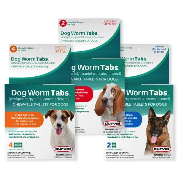 Durvet Dog Worm Chewable Tabs 45lb and Up 2ct.