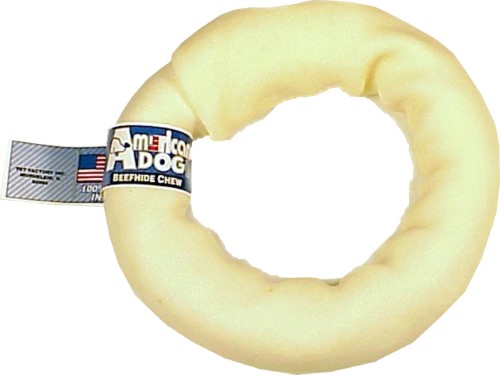 The American Dog Donut, Rawhide Dog is a unique dog toy that your dog will love. Color:White Size:7″ x 1.5″ x 7″.