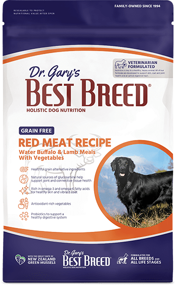 High-quality, low-ash water buffalo meat that is rich in protein,. taurine to support heart health. Gluten Free. Probiotics. Glucosamine. Natural sources of glucosamine. Antioxidant-rich fruits and vegetables, including blueberries, cranberries, carrots, tomatoes and spinach help maintain a strong immune system. omega-6 and omega-3 fatty acids, amino acids, and chelated minerals. To help ensure your dog’s nutritional safety, Best Breed pays a premium for EU-approved natural ingredients. .