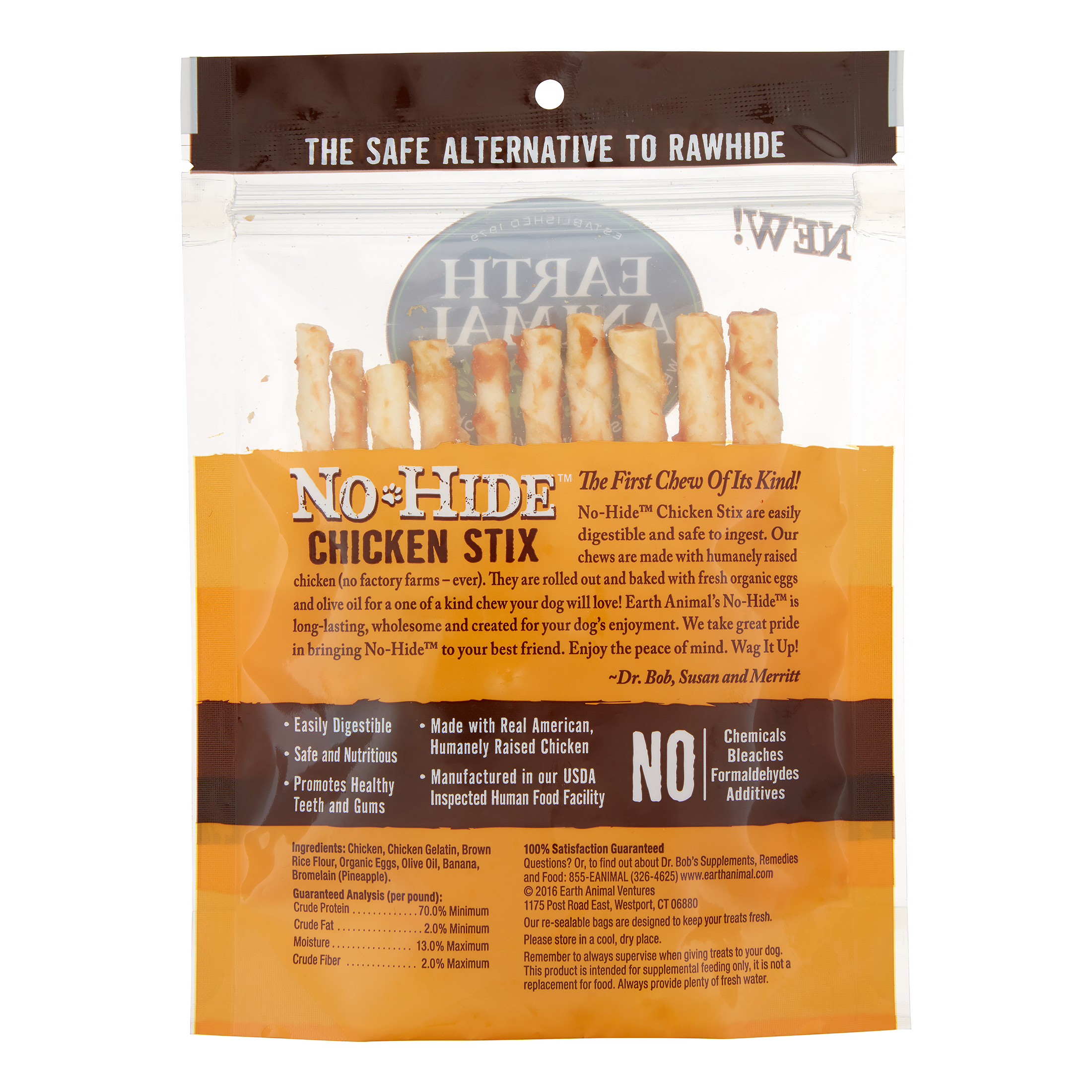 Earth Animal No-Hide Stix are the original healthy and mind-blowingly tasty rawhide alternative chews that provide long-lasting entertainment. We mix simple and wholesome ingredients, we add mouth-watering flavor dogs crave, and we bake slowly and gently to perfection. Earth Animal No-Hides contain no rawhide, no bleach, no synthetics, and no preservatives and are proudly made in the USA with Earth’s finest ingredients, including sustainably sourced proteins.
