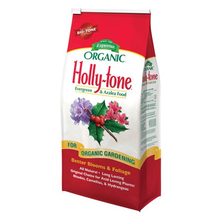 Espoma Organic Holly-tone Evergreen & Azalea Food is the original natural & organic fertilizer for all acid loving plants. Key Product Features An ideal choice for feeding hollies azaleas camellias evergreens dogwoods rhododendrons and more Analysis is 4-3-4 fertilizer analysis with 5-percent elemental Sulfur to help acidify soil Get more blooms with more vibrant color and larger plants with deeper green color Granular form makes it easy to spread no mixing required Environmentally safe for people pets and the planet no sludges or toxic ingredients Long lasting slow-release feeding with our exclusive Bio-tone Microbes Holly-tone plant food is for acid-loving plants such as hollies azaleas camellias evergreens dogwoods and rhododendrons. It is rich in natural organics and enhanced with Bio-tone microbes. Used and recommended by Professionals it is safe long lasting and will provide the nutrients necessary for vigorous and productive plants. Holly-tones all-natural formula contains Bio-tone Espoma s proprietary blend of beneficial microbes. Bio-tone biologically enhances their natural plant food to ensure superior plant growth. Ready to use no mixing!