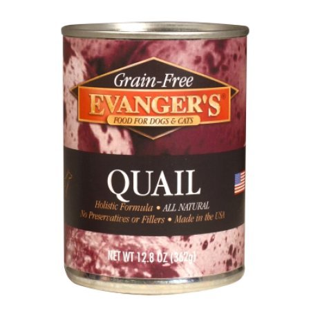 This grain-free variety is a hypoallergenic grain-free and gluten-free supplement to mix with Evanger s Vegetarian Dinner or dry food. Ingredients:Quail Water Sufficient For Processing Liver Guar Gum.