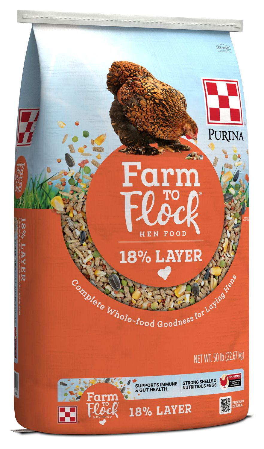 Give your laying hens a complete, balanced ration made with visible, whole-food ingredients they’ll actually peck first. Farm to Flock™ 18% Layer combines high-protein pellets with a hearty medley of ancient grains, seeds, split peas, carrots, and whole wheat. Purina’s Flock Strong™ System (live probiotics, prebiotics, and beneficial plant extracts like yucca, fenugreek, and soapbark) supports gut.