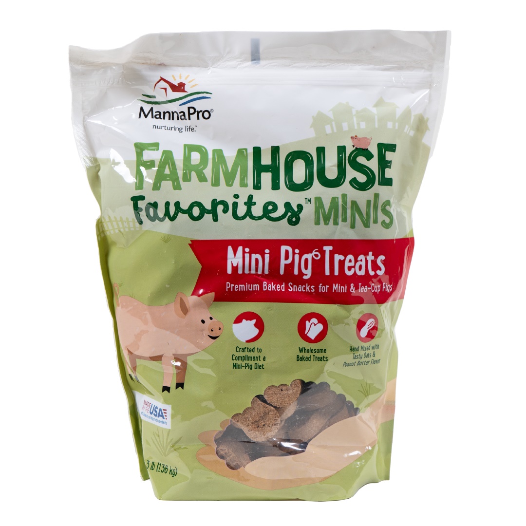 Manna Pro Farmhouse Favorites™ Mini Pig Treats are specially formulated. to cater to the unique needs and tastes of your mini pigs. Crafted with. care using premium ingredients sourced from environmentally conscious. farmers across North America, these treats ensure gourmet excellence for.