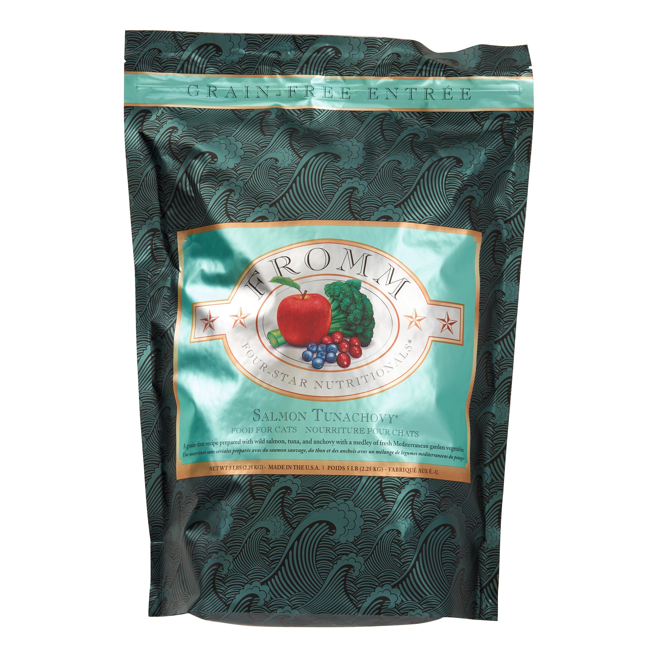 Fromm Four-Star Salmon Tunachovy Recipe is an enticing, grain-free entre with salmon, fish broth, tuna, and anchovy. This recipe is specially prepared to ensure consistency, quality, and superior taste in each and every bowl. Salmon Tunachovy Recipe provides complete and balanced nutrition for cats of all ages and can be alternated with other Fromm Four-Star recipes.Why We Love ItFromm Family Foods is a fifth generation family-owned-and-operated artisan pet food companyProduced at Fromm’s hands-on family-owned-and-operated facilityHigh nutrient digestibility and utilizationThird party pathogenic bacteria testing on all production batchesFromm’s specially developed blend of probioticsAbout FrommMaintaining a tradition of quiet innovation dedicated to the health and nutrition of dogs and cats since 1908, Fromm Family Foods is a family-owned and operated artisan dog and cat food company based in Wisconsin. Dedicated to food safety, Fromm ensures that every ingredient is tested and sampled before meeting their Wisconsin manufacturing facilities. With some of the highest inclusion levels of fresh meats, fish, fruits, vegetables, and real Wisconsin cheese, Fromm offers a holistic recipe for all types and tastes of dogs and cats, including grain-free, limited ingredient, puppy, and everything in between. Fromm Family Foods Products 2014 from Fromm Family Foods on Vimeo.