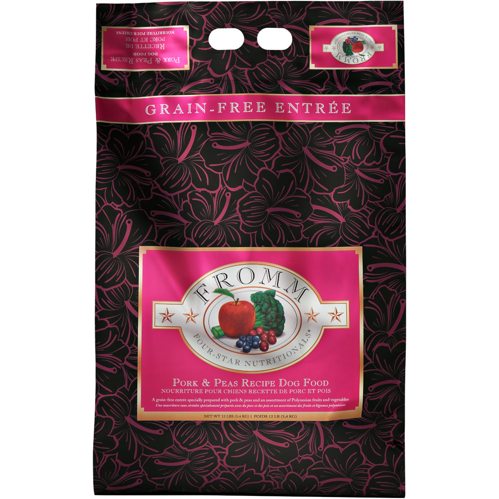 Fromm Four-Star Pork & Peas Recipe Dog Food is a grain-free Polynesian style entrée of pork and peas combined with an assortment of fresh, handpicked vegetables and fruits. This artisan recipe is prepared in small batches, ensuring consistency, quality, and superior taste in each and every bowl. Pork & Peas Recipe provides complete and balanced nutrition for dogs of all ages and, for variety, can be alternated with other Fromm Four-Star recipes.Why We Love ItFromm Family Foods is a fifth generation family-owned-and-operated artisan pet food companyProduced at Fromm’s hands-on family-owned-and-operated facilityHigh nutrient digestibility and utilizationThird party pathogenic bacteria testing on all production batchesFromm’s specially developed blend of probioticsAbout FrommMaintaining a tradition of quiet innovation dedicated to the health and nutrition of dogs and cats since 1908, Fromm Family Foods is a family-owned and operated artisan dog and cat food company based in Wisconsin. Dedicated to food safety, Fromm ensures that every ingredient is tested and sampled before meeting their Wisconsin manufacturing facilities. With some of the highest inclusion levels of fresh meats, fish, fruits, vegetables, and real Wisconsin cheese, Fromm offers a holistic recipe for all types and tastes of dogs and cats, including grain-free, limited ingredient, puppy, and everything in between.Fromm Family Foods Products 2014 from Fromm Family Foods on Vimeo.