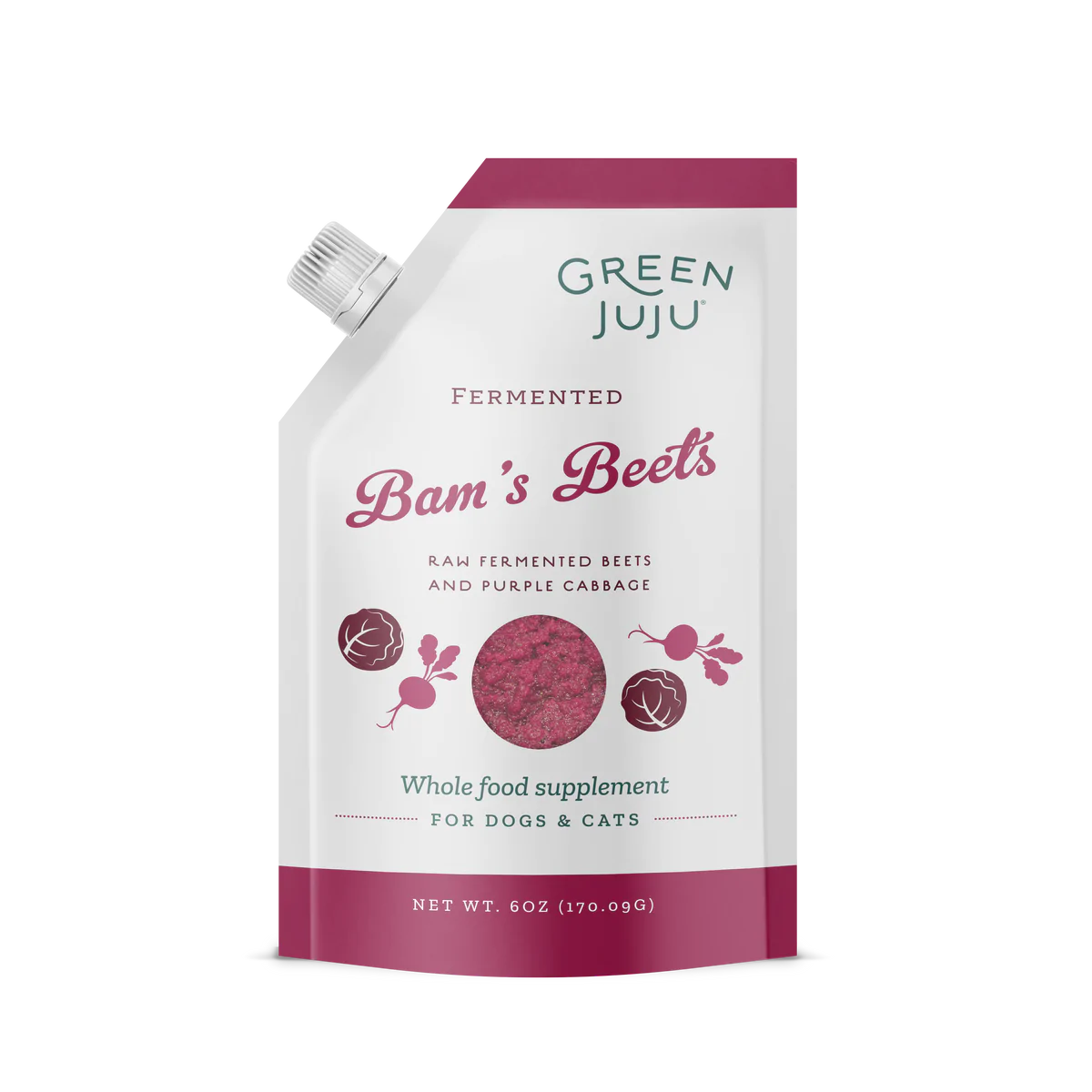 Organic red beets and purple cabbage fermented as a whole food source of probiotics, antioxidants, vitamins, minerals, enzymes and more. Whole food supplement for dogs or cats. Mix into your dog’s or cat’s meal — cooked, fresh or anything in between. Lasts up to 30 days thawed in the fridge.