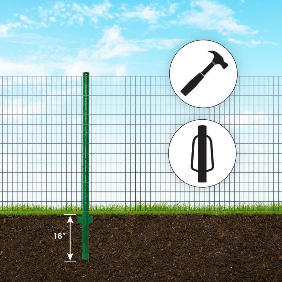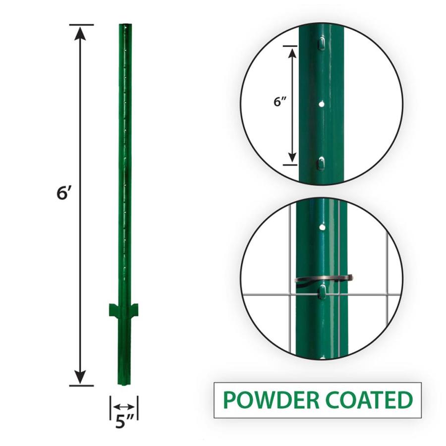 Ce poteau en U de 6 pieds de haut est un poteau en acier enduit de poudre conçu pour les applications plus légères. La finition enduite de poudre offre une durabilité accrue et aide à prévenir la rouille. La conception cloutée vous permet de fixer facilement votre clôture au poteau. Aucun creusement requis pour l’installation, il suffit d’enfoncer les poteaux dans le sol. Souvent utilisé pour les clôtures dans les jardins avec du grillage à poule ou d’autres fils légers.