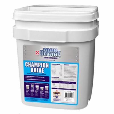 High Octane Champion Drive Topdress High Octane Champion Drive Topdress show feed supplement for pigs lambs cattle goats and poultry provides cutting-edge nutrition for the ultimate show ring look. This highly palatable show feed supplement is formulated with power-packed ingredients to unleash the full potential. Benefits: great for pushing toning or holding high in essential amino acids to produce the show ready look does not contain trace minerals so it s safe for all species including lambs formulated with very high-quality animal protein sources for muscle synthesis and maximum definition helping to make animals look great by building muscle and trimming fat high levels of both fat- and water-soluble vitamins (A D E and B) to give animals supplemental vitamins when they need a boost or are stressed Feeding Directions: High Octane Champion Drive Topdress is designed to be fed from start to finish of the show animal project as a supplemental protein source. Feed according to the directions found at www.purinamills.com/show-feed. Guaranteed Analysis: Crude Protein min 32.0% Lysine min 2.05% Crude Fat min 5.0% Crude Fiber max 6.0% Calcium min 1.10% Calcium max 1.60% Phosphorus min 0.83% Vitamin A min 15 000 IU/lb Vitamin D3 min 3 040 IU/lb Vitamin E min 350 IU/lb Note: Contains TASCO – Research has shown that TASCO helps lower body temperature during heat stress-keeping animals on feed. Contains AMAFERM – A natural feed additive that acts as a prebiotic increasing digestibility to maximize the energy value of feed. Ingredients: plant protein products processed grain by-products animal protein products dried seaweed meal dried egg product calcium carbonate animal fat preserved with ethoxyquin biotin vitamin E supplement menadione dimethylpyrimidinol bisulfite (source of vitamin K) pyridoxine hydrochloride calcium pantothenate thiamine riboflavin supplement vitamin B12 supplement niacin supplement folic acid grain products vitamin A supplement vitamin D3 supplement.