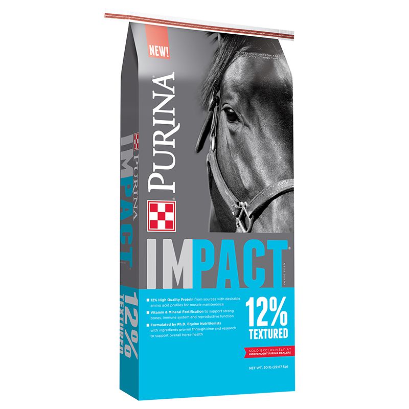 Purina Animal Nutrition Impact Horse 12% Sweet 50lb Textured.