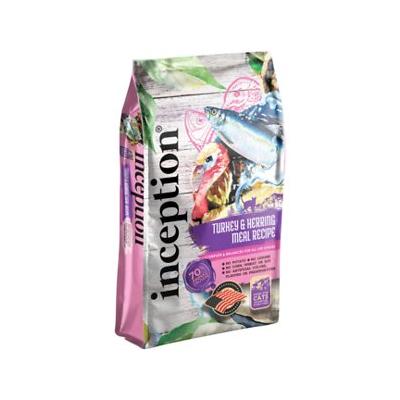 Inception Turkey & Herring Meal Recipe Dry Cat Food, 13.5-lb bag; It may not always be Thanksgiving turkey time, but you can still give your carnivorous feline friend the real animal protein she craves with Inception Turkey & Herring Meal Recipe Dry.