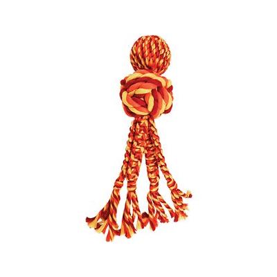 The KONG Dog Toy Wubba Weaves is a rope ball interactive squeak and chew toy suitable for dogs of all shapes and sizes. Made with a twist-knot cotton ball of rope to clean your dog’s teeth while they play and durable reinforced nylon material, the KONG Dog Toy Wubba Weaves toy is suitable for both indoor and outdoor use. The KONG Dog Toy Wubba Weaves toy has a floppy tail making them easy to pick up and throw and will provide hours of fetching and throwing playtime fun for your pet. The KONG Dog Toy Wubba Weaves toy is available in 3 sizes; Dog Toy Wubba Weaves Large Size 34×8 cm by Kong.