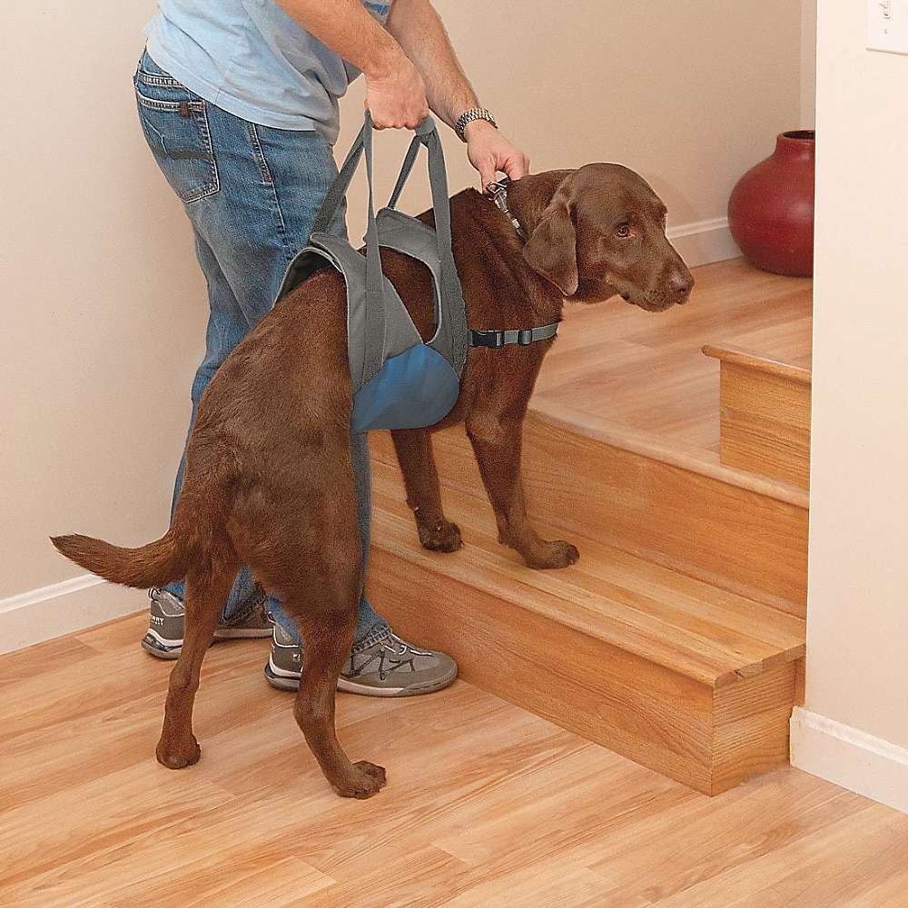 The Up & About Lifter is the perfect solution for an aging dog who can still get around but finds is harder than it used to be to climb stairs or get into the car. The thickly padded chest section and adjustable straps on both the top and bottom ensure comfort and the handle allows you to help when its needed without prohibiting your dogs movement.