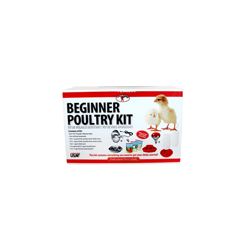 The Little Giant Beginner Poultry Kit includes everything you need to. start raising healthy backyard chicks. From heat and hydration to. feeding and education, this kit provides essential tools to support your. flock’s early development. Designed for convenience, safety, and. durability, it’s the perfect choice for first-time poultry keepers. ▪Includes UL-listed 10.5″ brooder lamp and 250W red heat bulb for safe,. efficient warmth. ▪Durable 1-quart feeder and waterer bases with matching plastic jars for. easy setup. ▪Galvanized 1-quart round feeder resists rust and handles outdoor use.