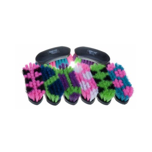 This Majestic Equine Grooming Brush Set is not only functional but also fun. Comes with 12 different brushes paired with new bristle color combinations of lime and black pink and white royal blue and lime teal and pink plum and lime and pink and black. All matched with a black grip-fit block that easily fits in your hand. Very soft synthetic bristles ensures a brush great for finishing and grooming sensitive areas. Measurements of block are 6-3/4 x 2-1/2.