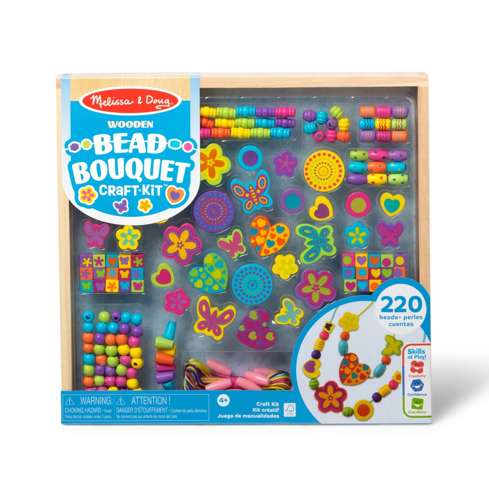 This deluxe beading set is a jewellery designer’s dream. The wooden sorting tray comes stocked with 8 multi-coloured cords that can be cut to the size you choose – necklace, bracelet, or anklet and 220 handcrafted heart flower, and butterfly beads with an array of lovely design details.