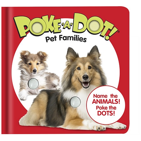 Pets and their families come in all shapes and sizes! See the pictures, name the pets and their babies, and poke the irresistible buttons on every page to hear satisfying “clicks” and “pops.” This sturdy 10-page interactive board book invites kids to pop along as they explore full-color photographs of adorable pets and their babies (a cat and kitten, turtle and hatchling, hamster and pup, etc.). Poke-a-Dot books help encourage language development, animal recognition, and fine motor skills. Patented Pop-a-Tronic technology lets kids one and older discover different popping sounds by poking the dots from the front or the back, with pages raised or flat!