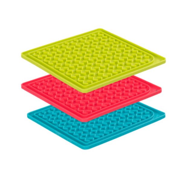 Stimulate your mutt while slowing their intake. Let your mutt lap up those healthy soft treats supplements or food. Just spread your mutts favorite snack over the surface let them lick it wash it and repeat. Our enrichment interactive dog lick mats make meal and snack time a lot more fun for our furry friends. Features Spread your dogs favorite soft treat and bake freeze or just serve Groove design will slow your mutt s intake on any spread while providing the therapeutic benefit of licking Center bowl holds up to 1 Cup (250 ml) of your favorite liquids Super flexible silicone is easy to clean and dishwasher safe 20 Piece – SKU: NDPS44412.