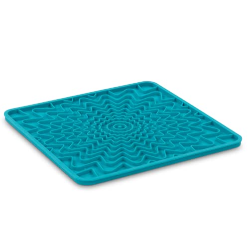 Stimulate your mutt..while slowing their intake. Let your mutt lap up those healthy soft treats supplements or food. Just spread your mutt s favorite snack over the surface or easily freeze liquids and spreads like milks Braziloths peanut butter and yogurts to prolong their enjoyment. Structured frame to help reduce spillage and carry with ease! FRAMED SERIES is designed for easy filling carrying and loading in and out of the freezer without the mess. Groove design captures your spreads to help slow your mutt s intake while providing the therapeutic benefit of licking. Super flexible silicone is easy to clean and provides a non-slip base. The 10 x 10 mat is made from high quality flexible soft food grade safe silicone with a structured nylon rim is BPA and PVC free odor and stain resistant. Freezer and dishwasher safe. Keeps color and shape over time.
