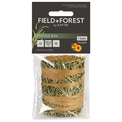 Field+Forest by Kaytee Mini Hay Bales are made with long strand Kaytee timothy hay and topped with marigold for a fun and convenient way to treat your pet. All-natural high fiber timothy hay makes this a healthy part of your pet s feeding routine. Each added topping adds variety and foraging opportunities. Offer your pet Field+Forest by Kaytee Mini Hay Bales for an enriching and nutritious experience.