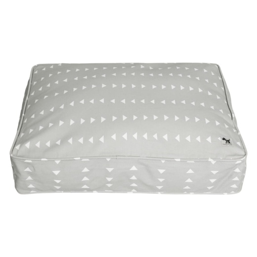 White triangles on a chameleon-like grey color (it goes with everything). It’s the same grey as our fade into you pillow pack. • sized for our 5 inch thick dog bed inserts. • breathable 100% cotton canvas material. • durable, washable & preshrunk. • non-toxic & free from harmful chemicals Cleaning your bed cover. 1. Wash in cold water with a mild detergent. 2. Don’t let items soak for a long period after the wash. 3. Tumble dry on the low or warm heat setting Avoid shrinking:. Don’t leave items to sit in the washer (or soak) for an extended period of time. This can cause cotton—even preshrunk—to shrink. Avoid fading/discoloration:. Optical brighteners found in common detergents can cause premature fading and discoloring.