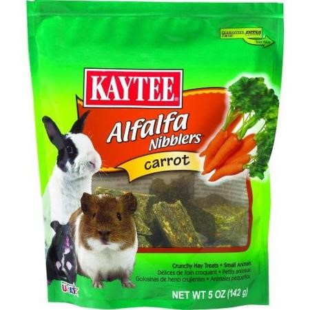 Kaytee Products Inc 100032801 NibblerNibbler Kaytee carrot nibblers are a tasty nutritious treat designed specifically for your pet. Made with the freshest alfalfa hay and real carrots. Nibblers satisfy the natural craving to chew. While supplying your companion with a wholesome nutritious treat. Feeding instructions: treats add variety and can be fed up to 20% of the total food intake. Discard unused portion if soiled. Not intended for human consumption. Color: CARROT Ingredients: Sun-Cured Alfalfa Dehydrated Carrots Ground Oats Ground Wheat Wheat Middlings Dehulled Soybean Meal Dicalcium Phosphate L-Lysine Calcium Carbonate Wheat Germ Meal Brewers Dried Yeast Salt Dl-Methionine Soy Oil Vitamin.