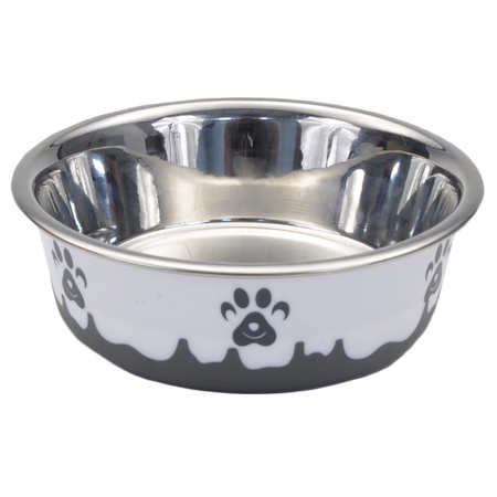 The Maslow Design Series Paw Bowls are made of stainless steel that is hygienic, rust-proof and dishwasher safe. The rubberized bottom makes these bowls non-skid to help prevent sliding and spills. These functional bowls are available in three sizes to accommodate small, medium and large pets and in three fun color combinations.