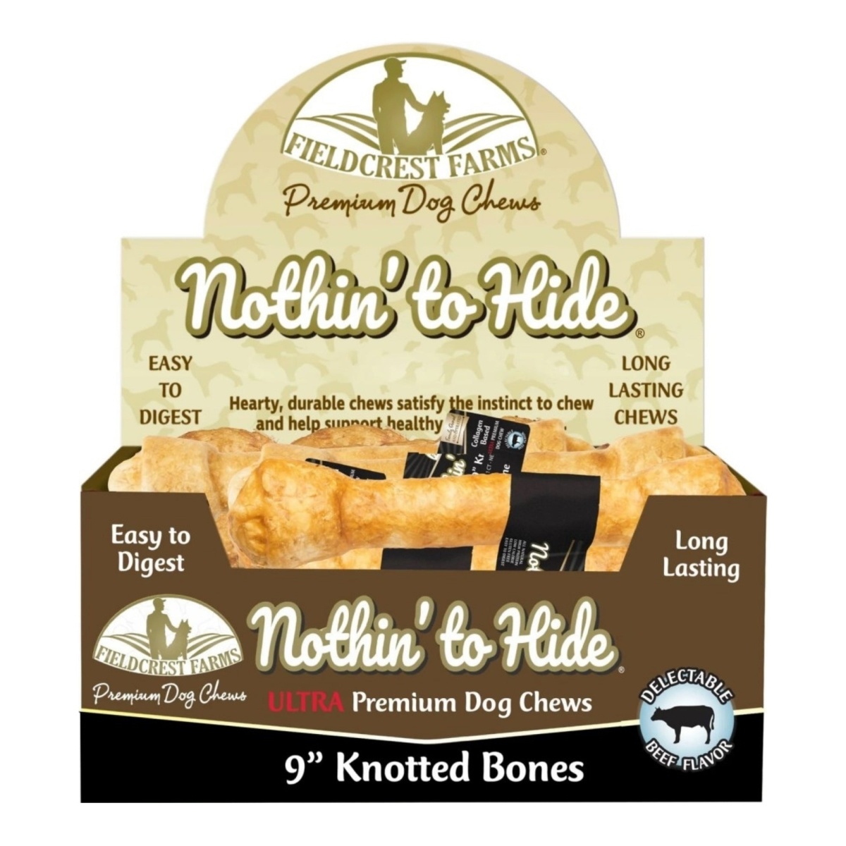 Nothin to Hide Ultra-Premium dog chews are highly digestible very long-lasting collagen based chews. These Chews will provide hours of chewing pleasure for your furry friends. Contains 14 piece 9 knotted bone in a full color box Features Nothin to Hide Ultra Knotted Bone Dog Treat – Beef Highly digestible Very long-lasting alternative to rawhide Savory flavor coated chews Safe flavorful chewing experience for your pets Case of 14Specifications Size: 9 – SKU: NDPS48644.