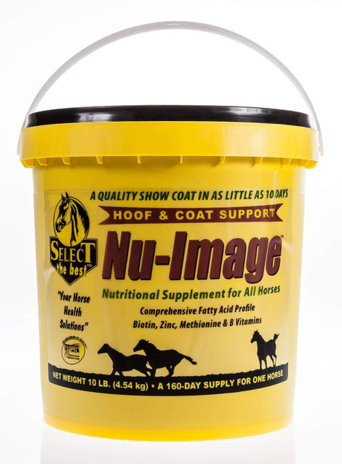 Select the Best Nu-Image™ Nu-Image™ is a scientifically formulated nutritional supplement rich in Omega-3 and Omega-6 Fatty Acids, fortified with Biotin, Zinc, amino acids, and designed to promote the growth of exceptionally healthy, luscious hair, mane, and tail. This high-quality coat conditioner is formulated to work with all feeding programs and other supplements safely, without fear of over-supplementation.