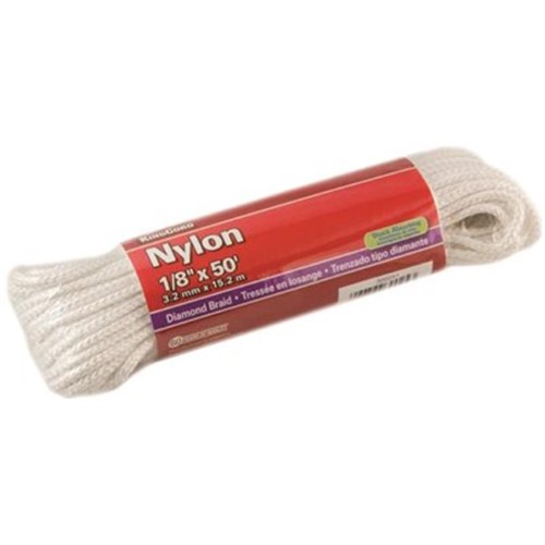 This flexible and durable nylon rope brings strength and dependability to your home supplies. Measuring 1/8 inch thick and 50 feet long, the braided design offers durability for tying down loads or securing objects, while the colourfast nylon fibre withstands wear and tear. The smooth texture and pliability allow the rope to be formed into loops and knots with ease, making it a handy addition to your toolbox or workshop for household tasks that require a sturdy yet flexible rope.