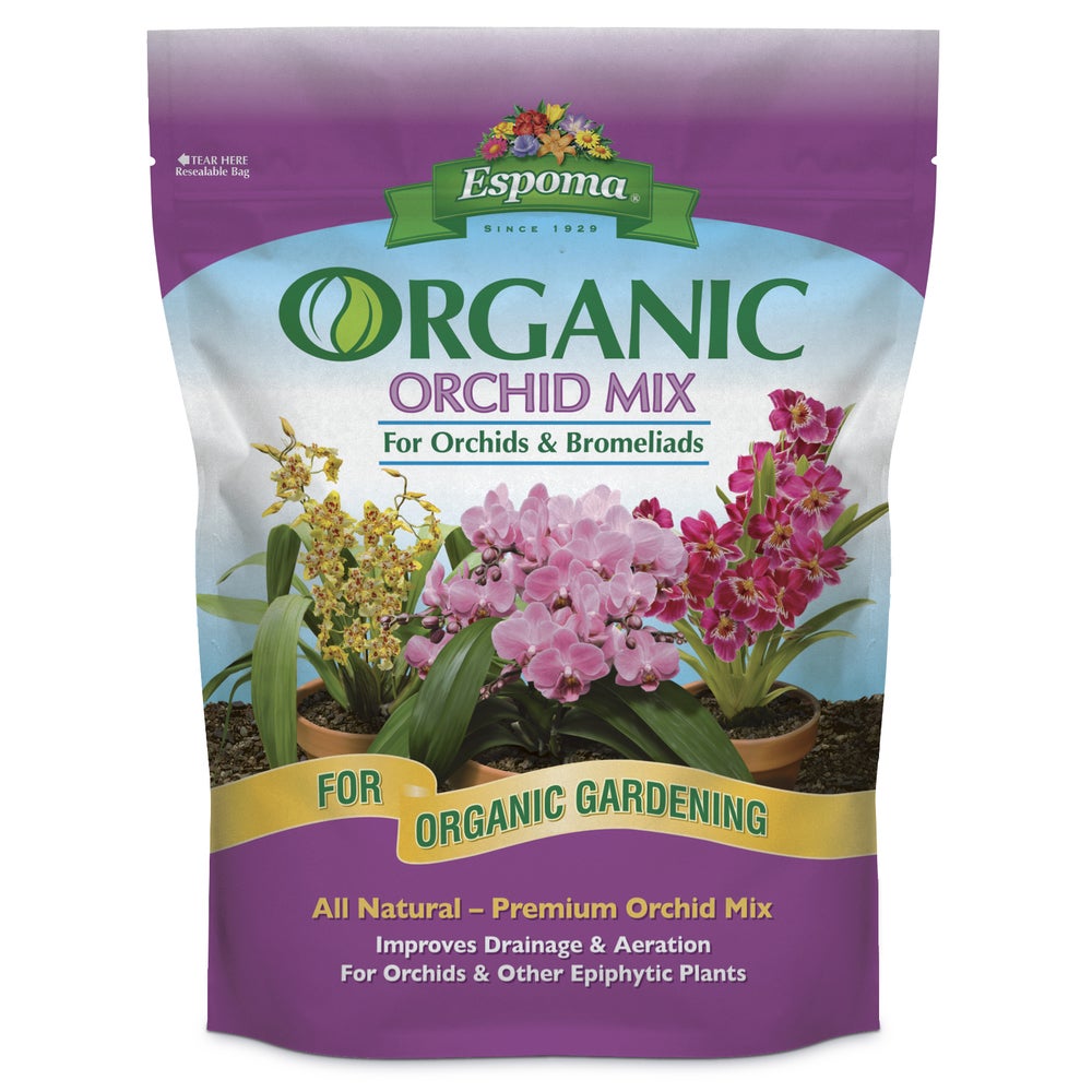 Espoma Organic Orchid Mix is the ultimate potting soil for all types of orchids and Bromeliads. Product Key Details: For use on all Orchids and Bromeliads Grow bigger more beautiful plants Provides optimum aeration and drainage 100-percent natural and organic approved Safe for people pets and the planet Formulated from aged pine bark horticultural charcoal perlite and limestone to adjust pH and yucca extract. Espoma Organic Orchid Mix is the ultimate potting soil for all types of orchids including phalaenopsis cattleyas dendrobiums and cymbidium. It contains a rich blend of premium pine bark perlite horticultural charcoal yucca extract and lime to ensure your orchids grow beautiful blooms. Provides optimum aeration and drainage for bigger more beautiful plants.