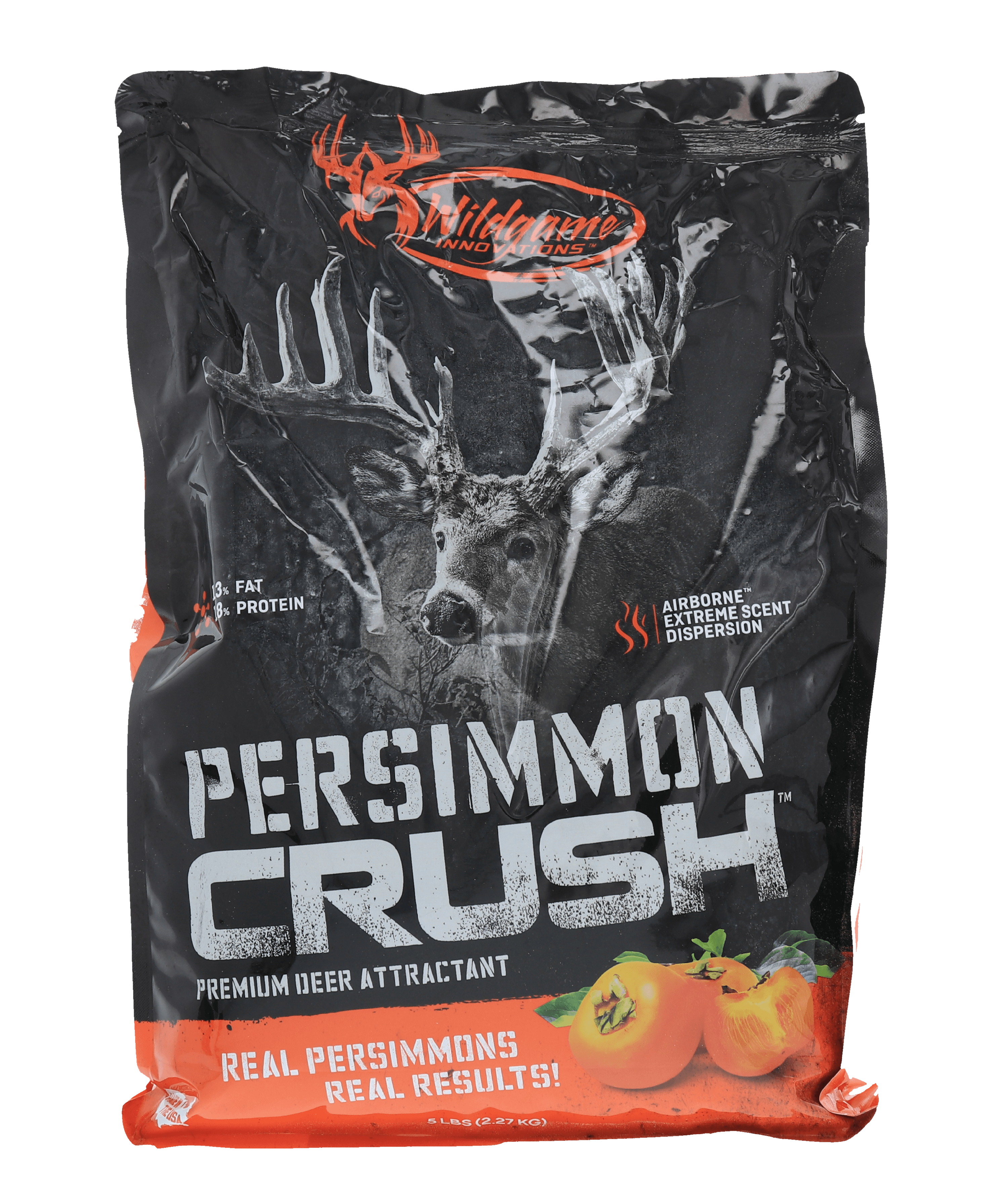 Wildgame Innovations Persimmon Crushed Deer Attractant is the answer you have been longing for. This 5 pound bag of attractant is made with real persimmons and packed with nutrition that deer will notice and go out of their way to enjoy. Finely sifted this attractant is quickly absorbed for nutritional effect and maximum scent for wide range and is effective in all seasons. This attractant can be used by itself to make food plots more irresistible and also mixed with feed for use in most automatic feeders. Get the power of persimmons working for you while avoiding the mess and encounter more deer than ever with Wildgame Innovations Persimmon Crushed Deer Attractant. Persimmon Crushed combines the natural attracting power of real persimmons with our high-protein and carbohydrate-packed proprietary base. Before it goes in the bag the powder goes through a double-screening process; this creates a finely sifted formula that absorbs and releases with incredible long-range in-your-face power. All that with an irresistible persimmon taste makes this one of the most incredible attractants ever.
