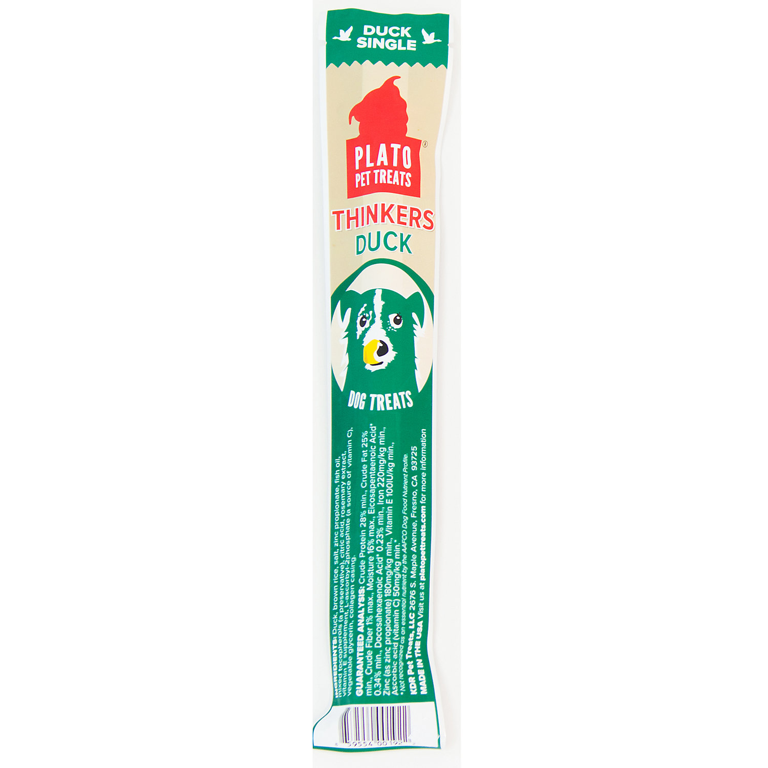Plato Thinkers Duck Recipe Single Dog Treat, 1 count; Some-paw-dy is in for a tasty and nutritious treat when you reward her with Plato Thinkers Duck Recipe Single Dog Treats. Real duck is the first ingredient in this limited-ingredient recipe, and you.